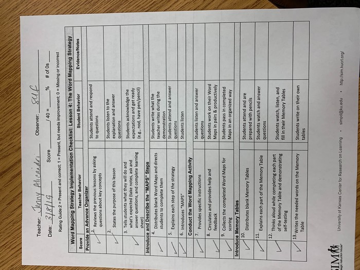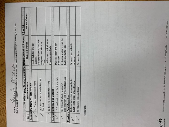 Be observed by your professional developer in person or by video.  Post the observation checklist from the observing professional developer. If you would like to post your video to your credential (by posting a link to your video from Vimeo, YouTube, or another video hosting site) ensure that all permissions are in place or privacy settings activated.  Posted video will be viewable to anyone viewing your credential.   More than one video may be submitted to your professional developer for feedback or posted to your credential.  The video should show the entire model, including the beginning of the lesson, your modeling of the strategy for students, continuing until the end of the lesson.  Follow the modeling checklist below: