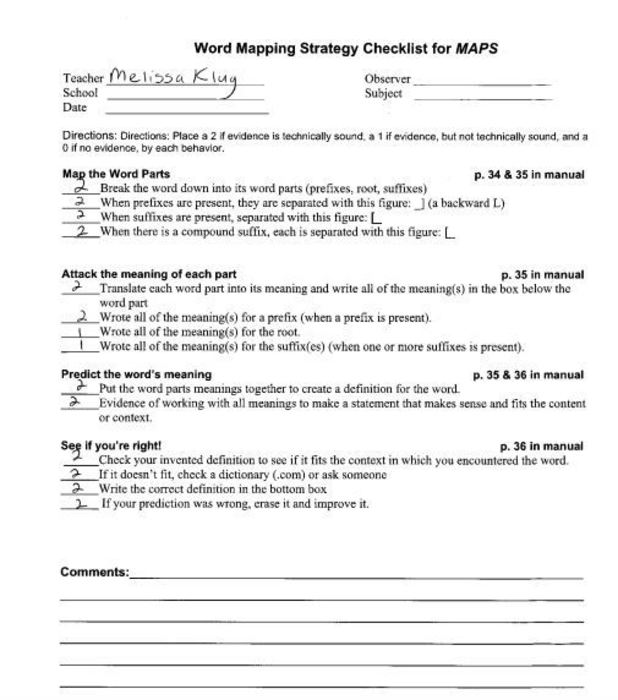 Teach the Word Mapping Strategy in its entirety to a person or class, following the instructional steps in the manual.