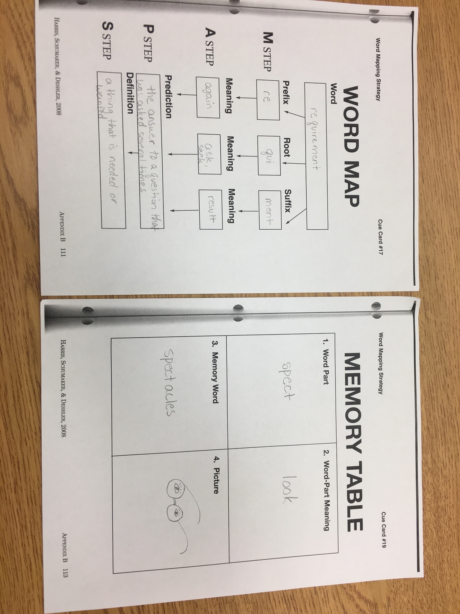 Student portfolio memory table and word mapping.