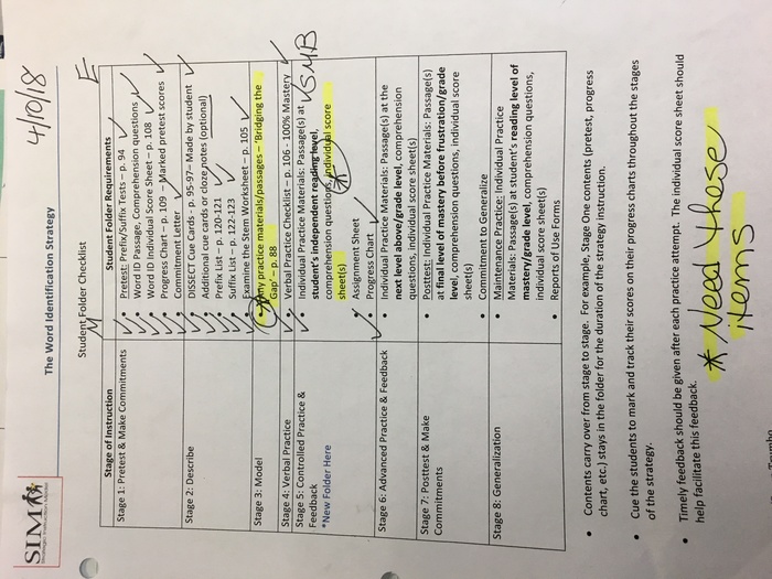 Submit one student portfolio to your coach that shows complete implementation of the strategy.