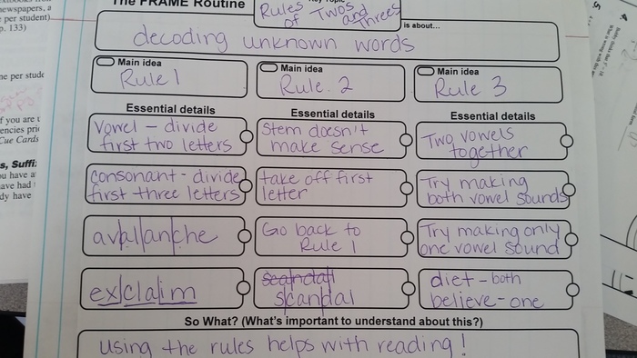 Stage 2: Students complete a frame related to the Rules of Twos and Threes.