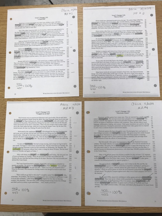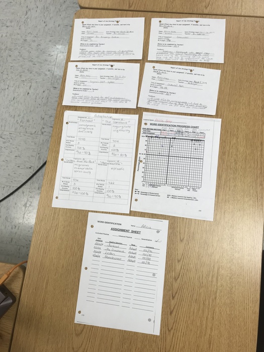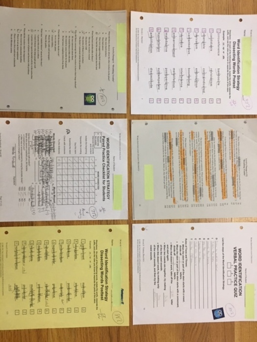This entry shows a portfolio of work samples from one student demonstrating the WORD IDENTIFICATION Strategy.