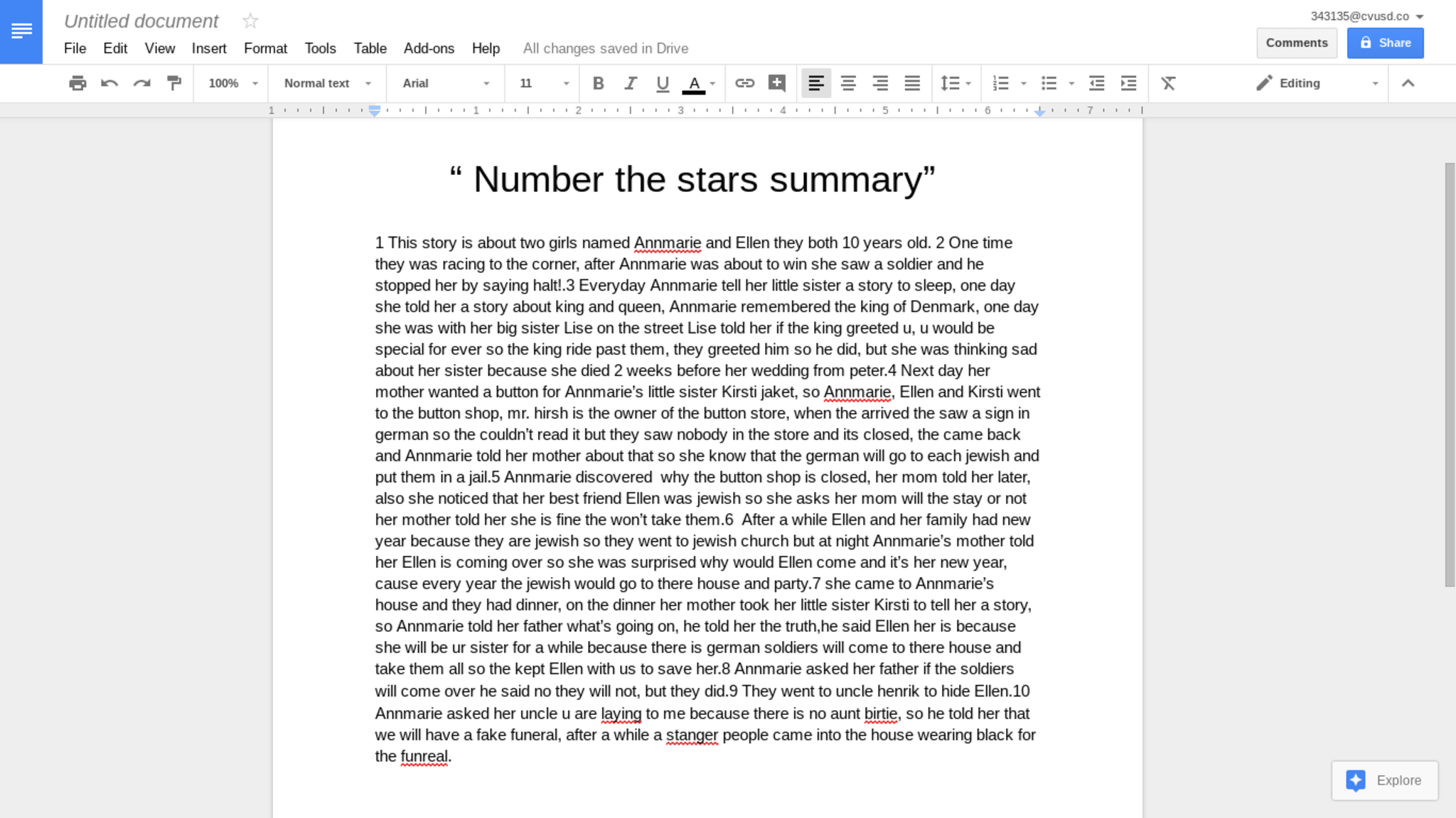 Number the Stars Writing