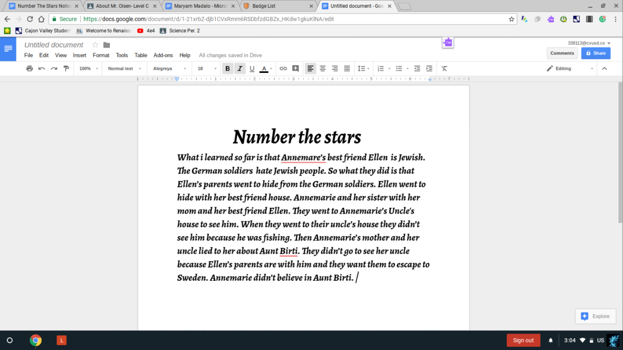 Number the Stars Writing