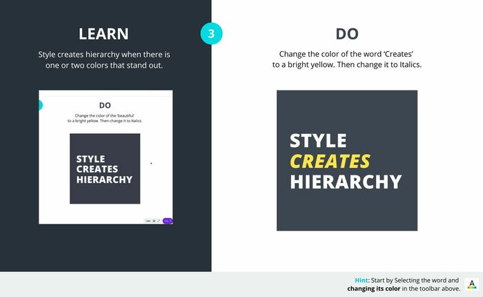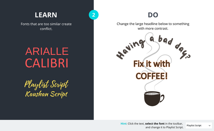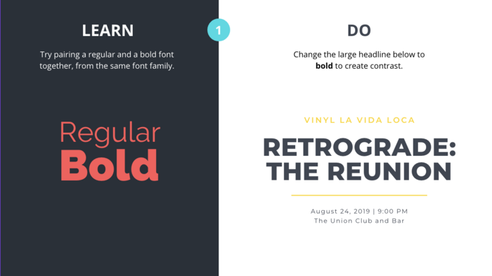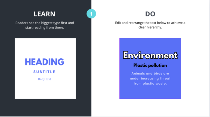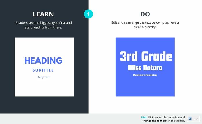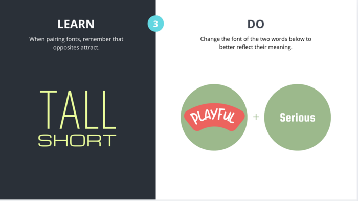 Hierarchy with fonts example. Good reminder to use font effectively to get your point across.
