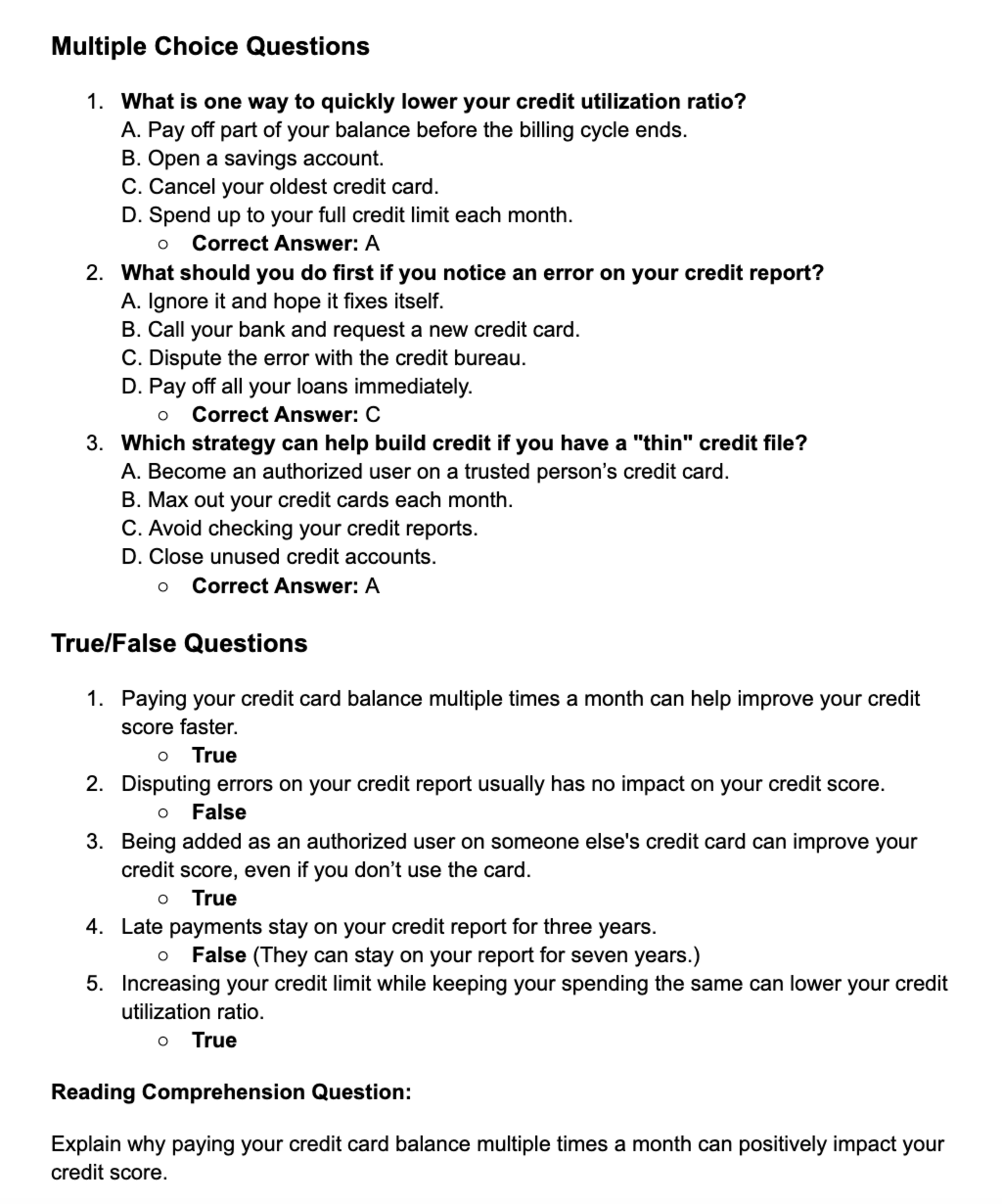 Part 3 Assessment Questions and Prompts