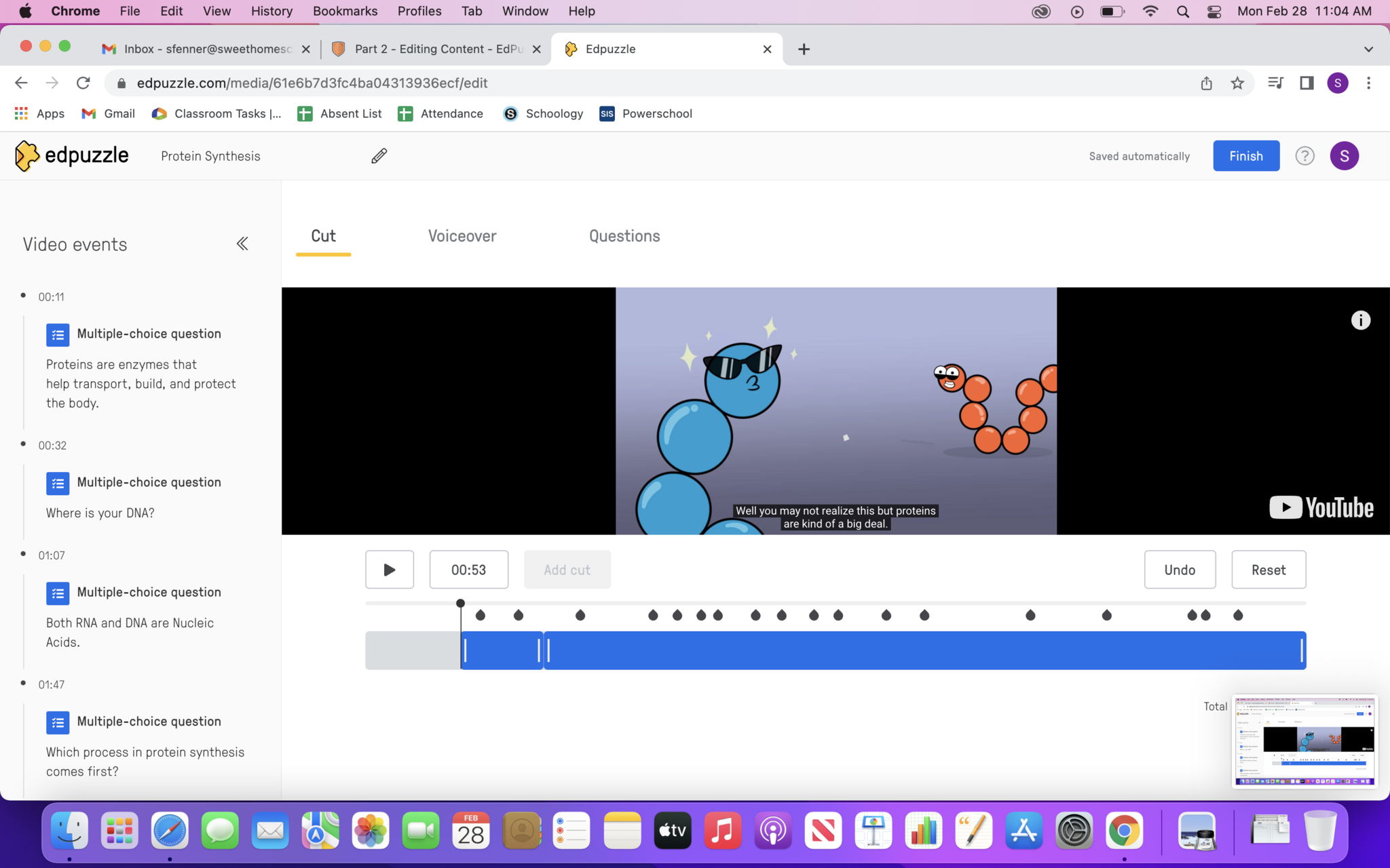 I added an open ended question to get students thinking about our next lesson (mutations) I also cut several seconds off the beginning.