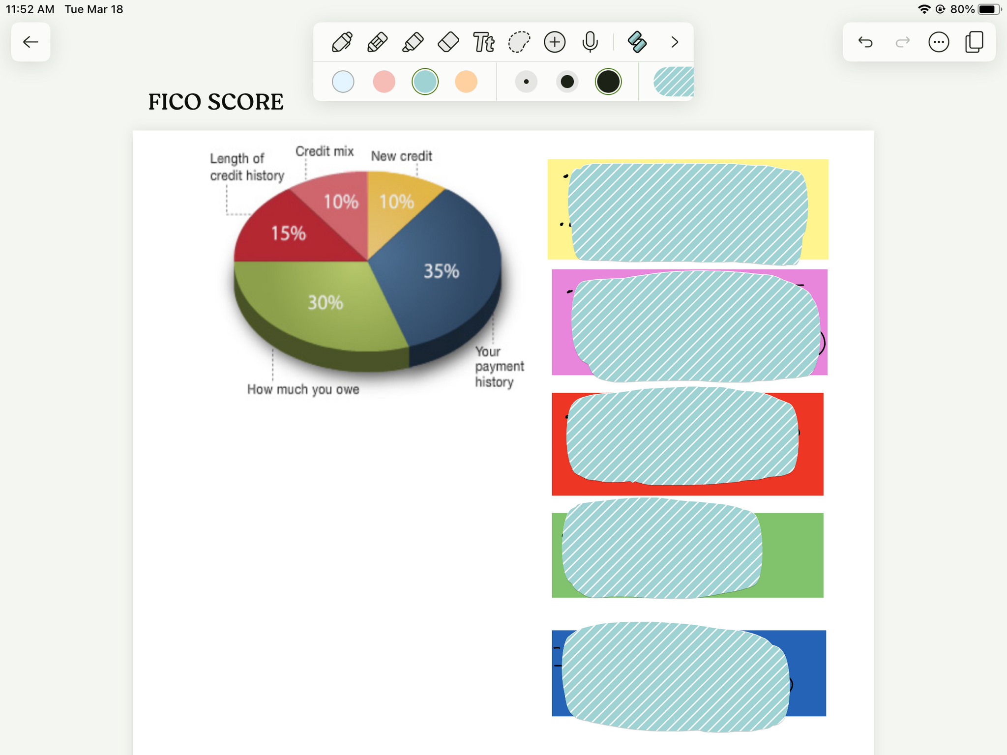 FICO Credit Score Components! Great study guide to remember the 5 parts!