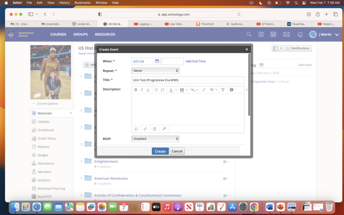 4. Post a calendar event to both YOU and YOUR CLASS