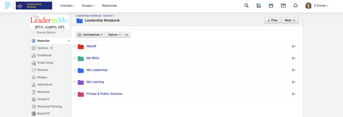 I organized the folder 'Leadership Notebook' in my created Leadership Course by sections that are color coded. This'll serve as a portfolio