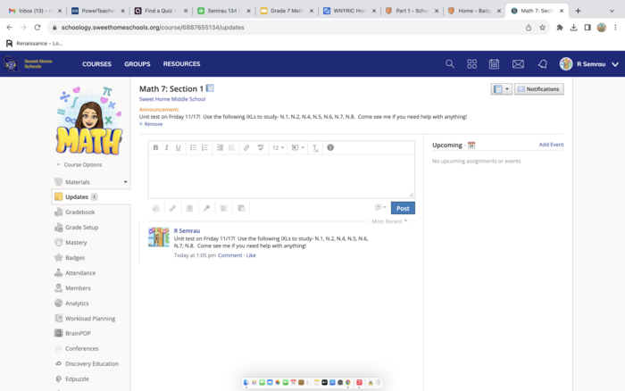I have never used an "announcement" before, so this is something I will post when there is an upcoming test for students and parents to view