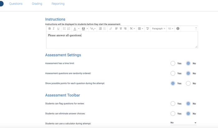 Learn how to create an assessment and prepare to start making questions.