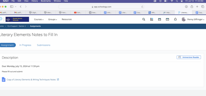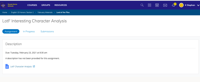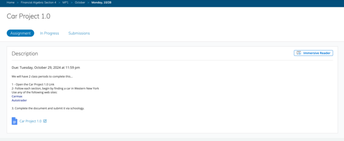 [3] Take a screenshot of your published assignment in Schoology. (be sure to screen sho the assignment once it is open and not just in the materials list on your Schoology course.)