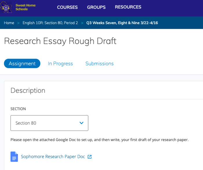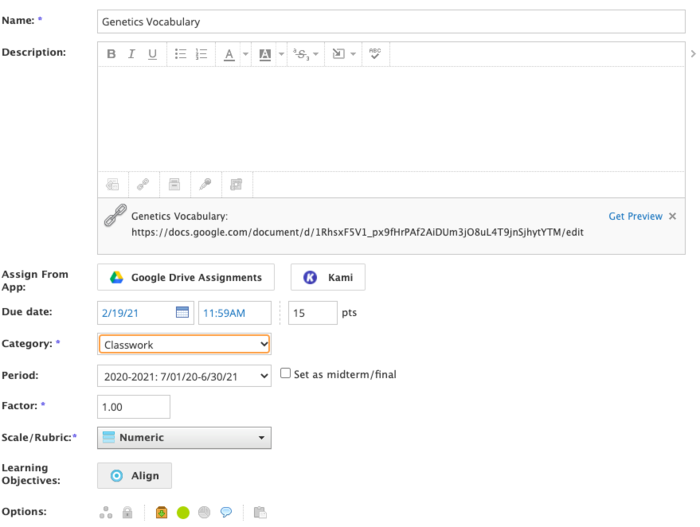 [1] Create the assignment in Schoology that you want students to access the document you created in Part 1 of this badge. - (be sure to attach your google file as described in the video)