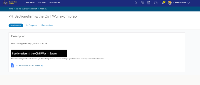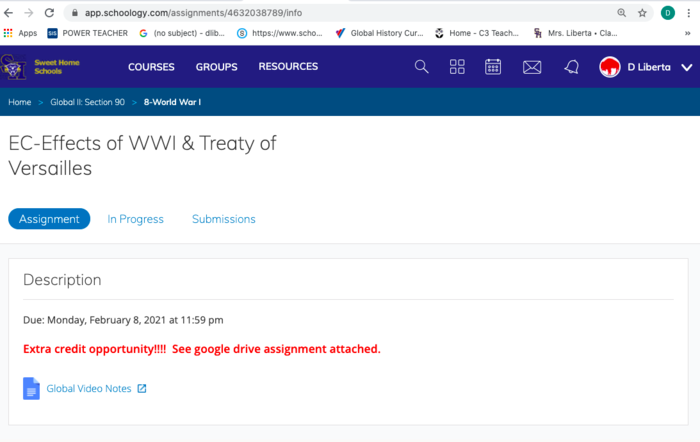 [3] Take a screenshot of your published assignment in Schoology. (be sure to screen sho the assignment once it is open and not just in the materials list on your Schoology course.)