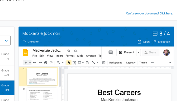 Part 3 will focus on the look and feel of the Schoology Google Drive Assignment once it has been created on both the student and teacher side. You will also learn how to grade these items once they are submitted.