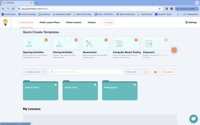 [2] Add 2-3 tasks or lessons in each folder to get you started.