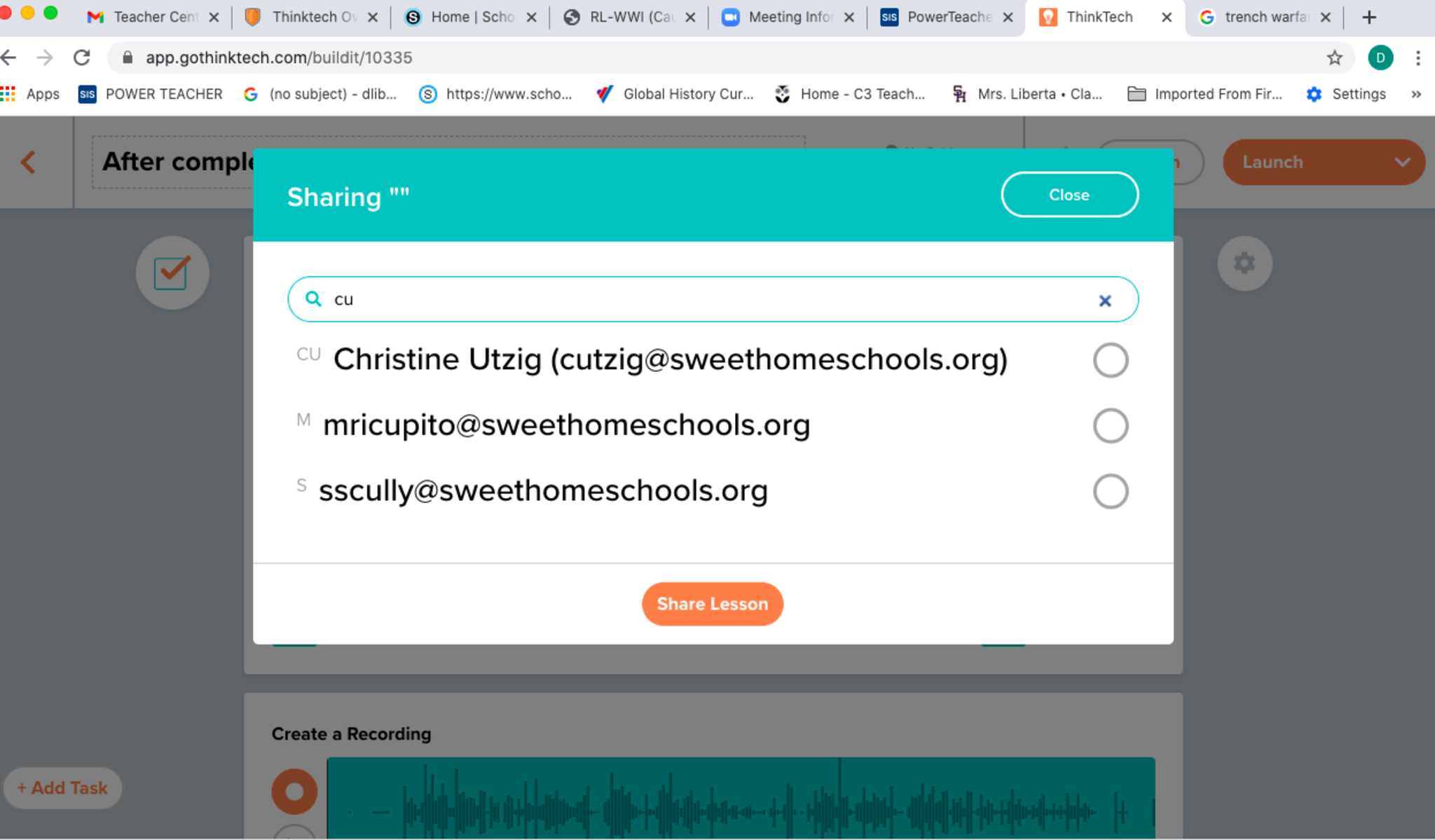 Sharing of task drop down