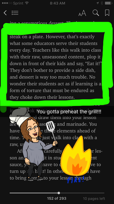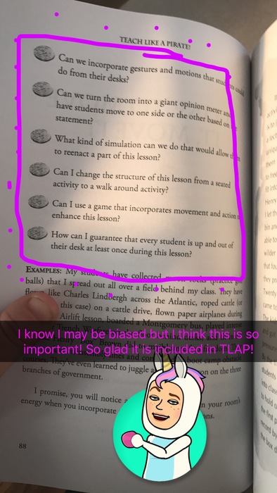 You can snap any you'd like, but the final product must include... -pic of the text -specific line or line that you draw our attention to (highlight, underline, etc) -emoji -text annotation -Optional - audio recording that explains the booksnap at an even deeper level