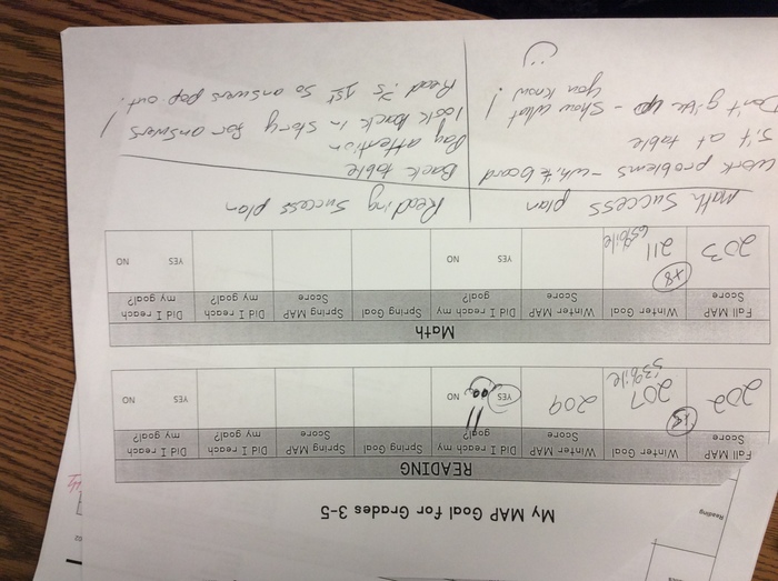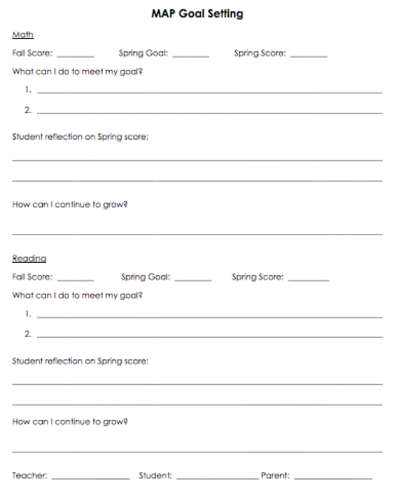 I/We (school-wide) use the goal setting sheets provided by MAP.