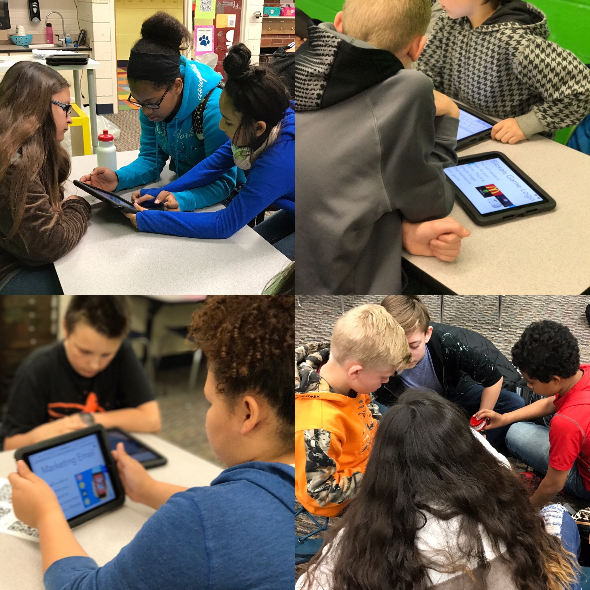 This is a collage of our Bloxels Marketing groups working through the Nearpods