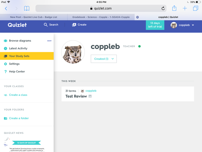 I have kids find my class so they can easily retrieve the flashcard sets I've either created or have found and reviewed for them.