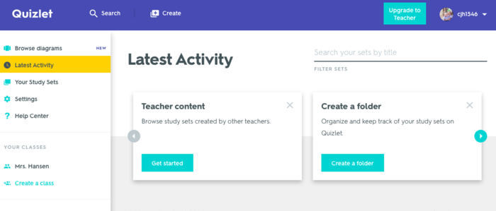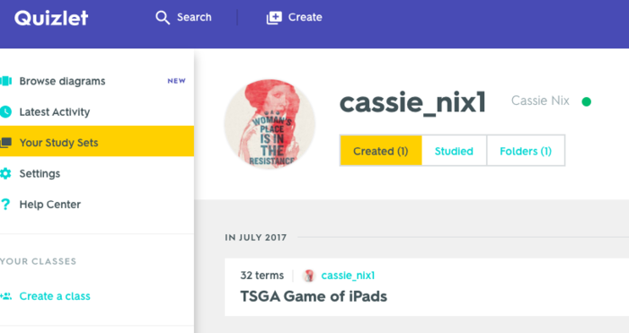 Sign up for a free account. Screenshot something from your Quizlet Dashboard that shows you were successful.