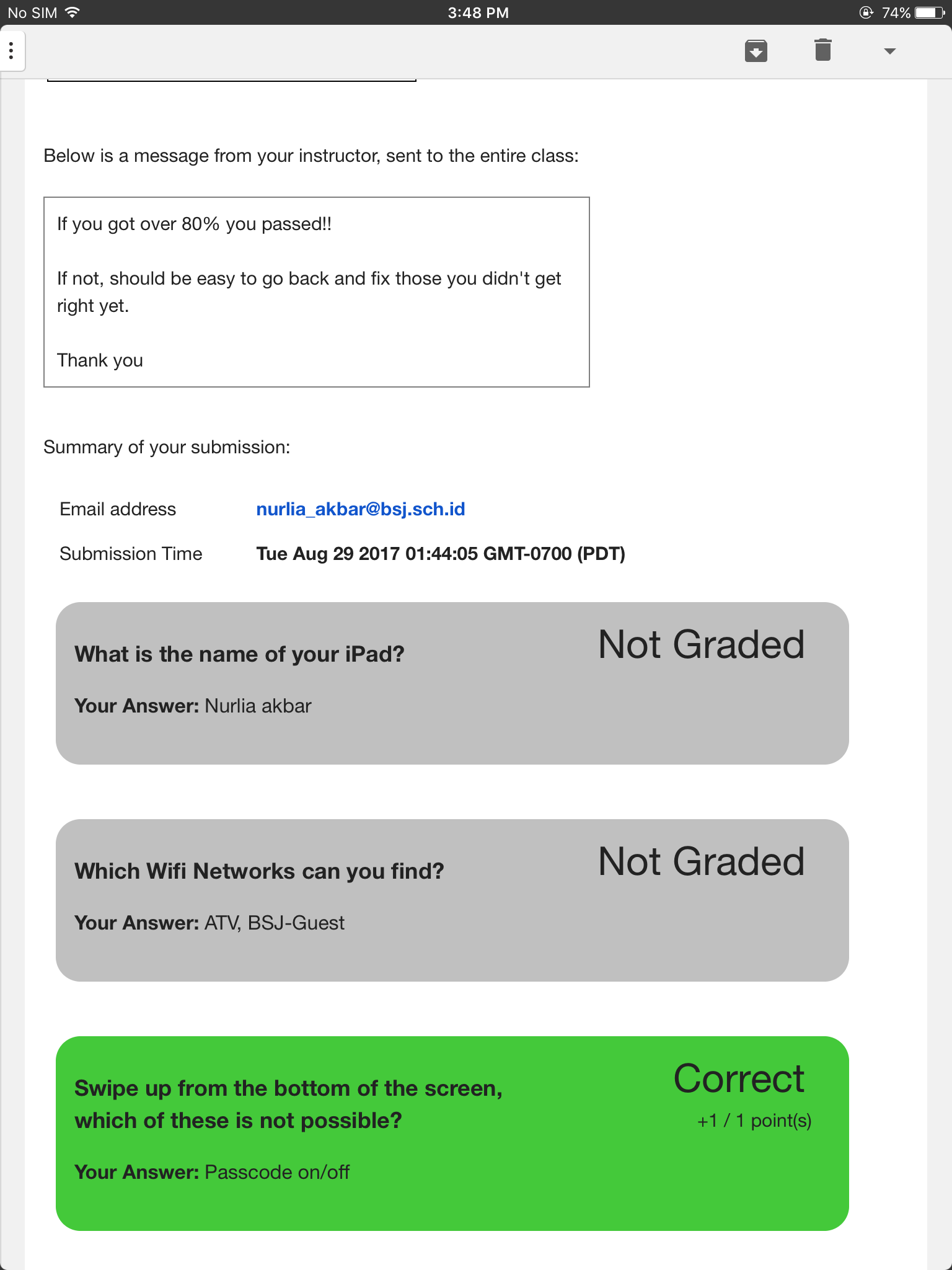1. Completed the iPad Familiarisation Quiz