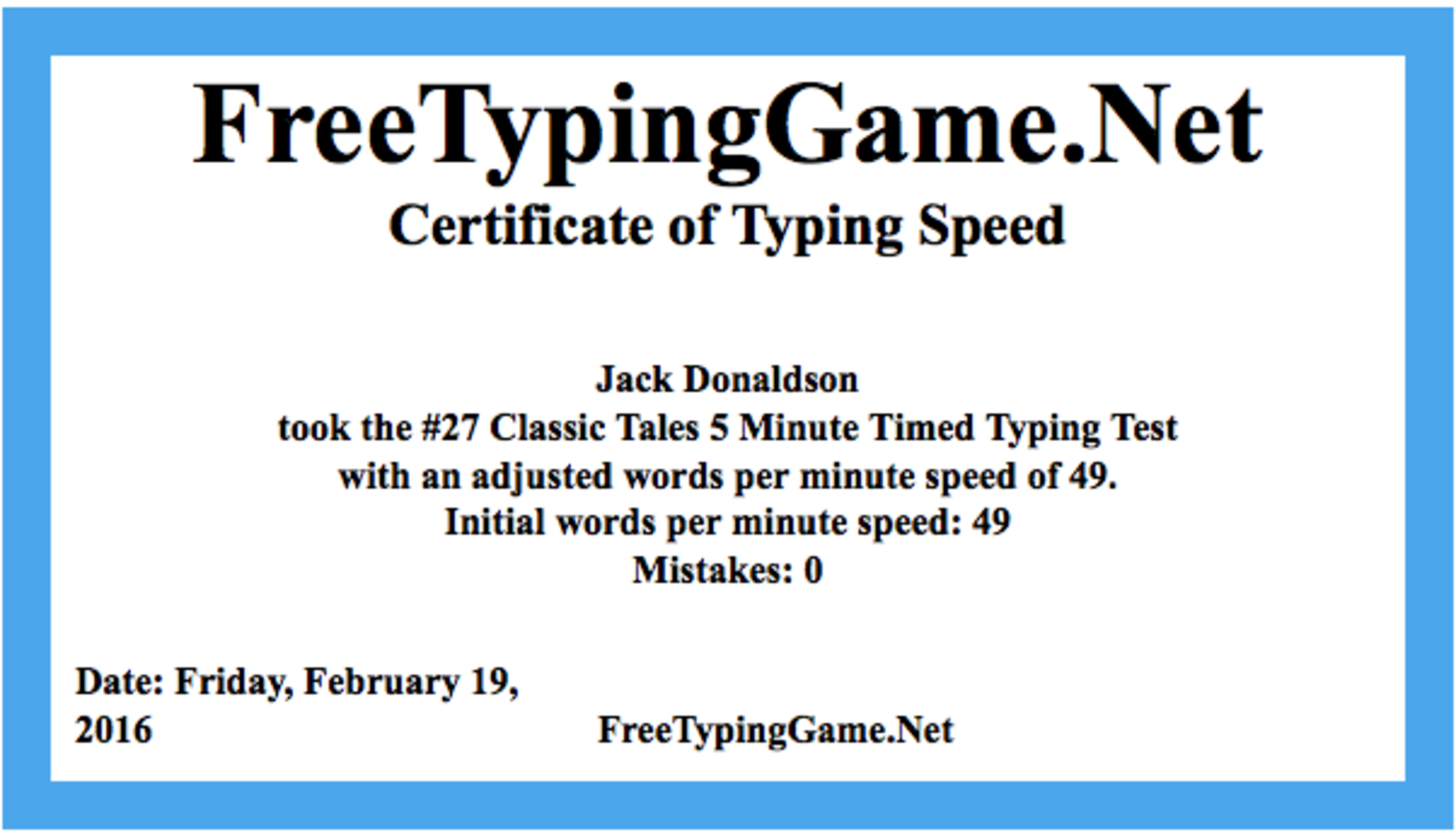 Typing Certificate