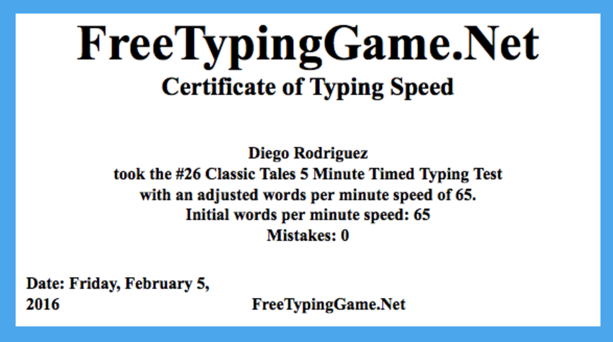 Typing Certificate