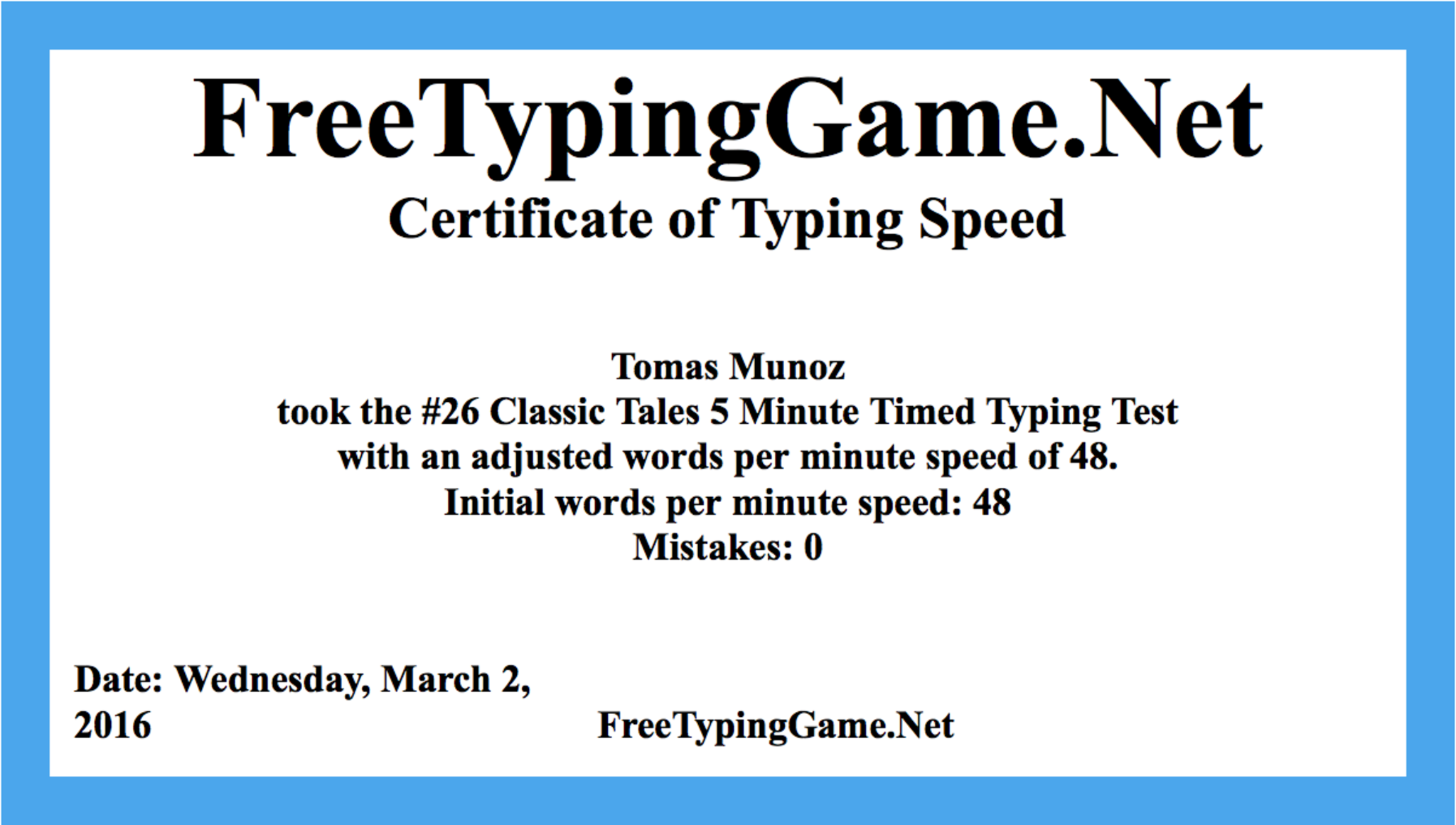 Typing Certificate