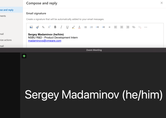 Screenshot of both email signature and Zoom display name