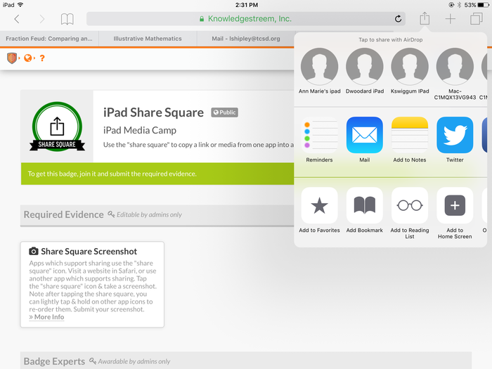 Apps which support sharing use the "share square" icon. Visit a website in Safari, or use another app which supports sharing. Tap the "share square" icon & take a screenshot. Note after tapping the share square, you can lightly tap & hold on other app icons to re-order them. Submit your screenshot.