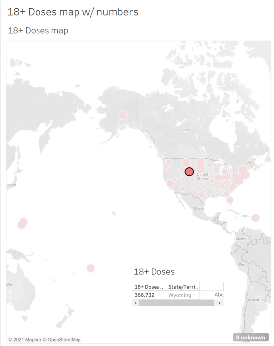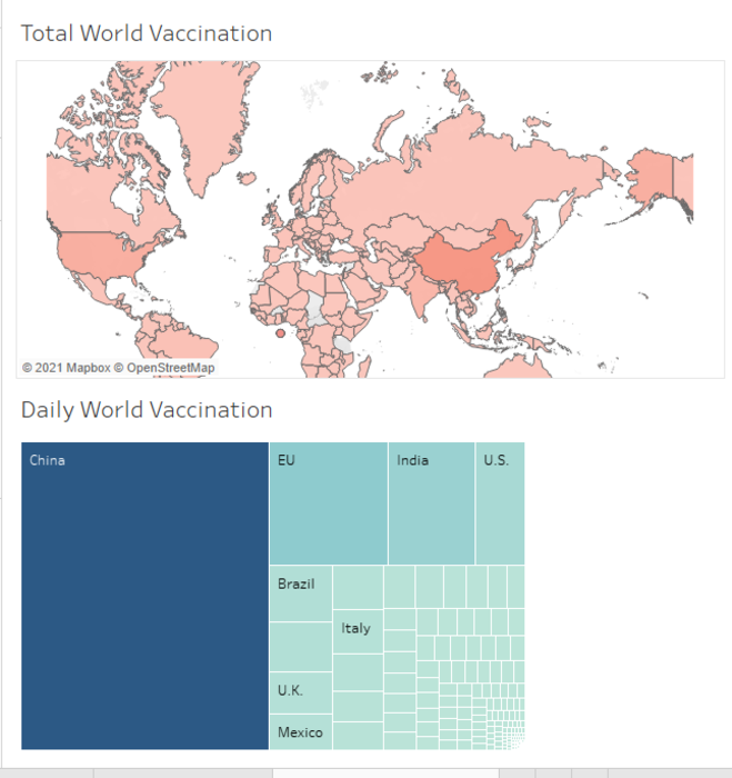 When you click on any country on the map, you can see the number of vaccinations per day in that country in the visualization below.