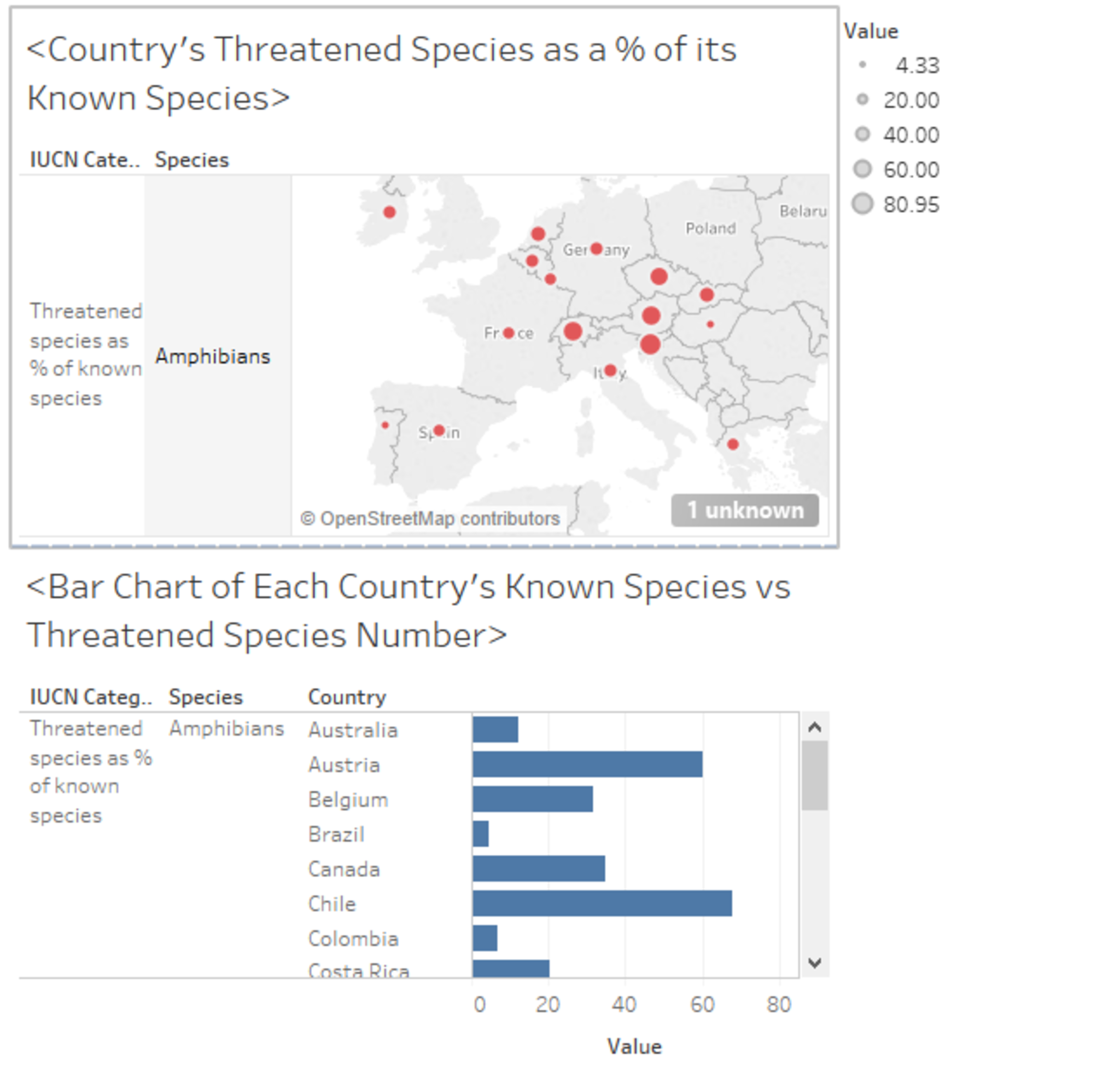 Click on a country to see individual percentages. Ctrl +Click on a additional countries to compare percentages across a bar chart.