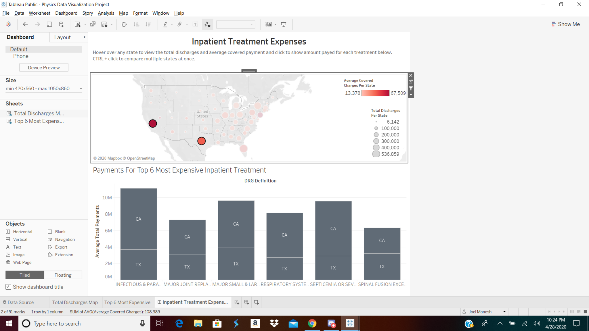 Clicking on one of the states isolates it in the chart below and shows the cost spent on each of the six treatments. Holding CTRL and clicking on other states makes it easy to compare multiple states