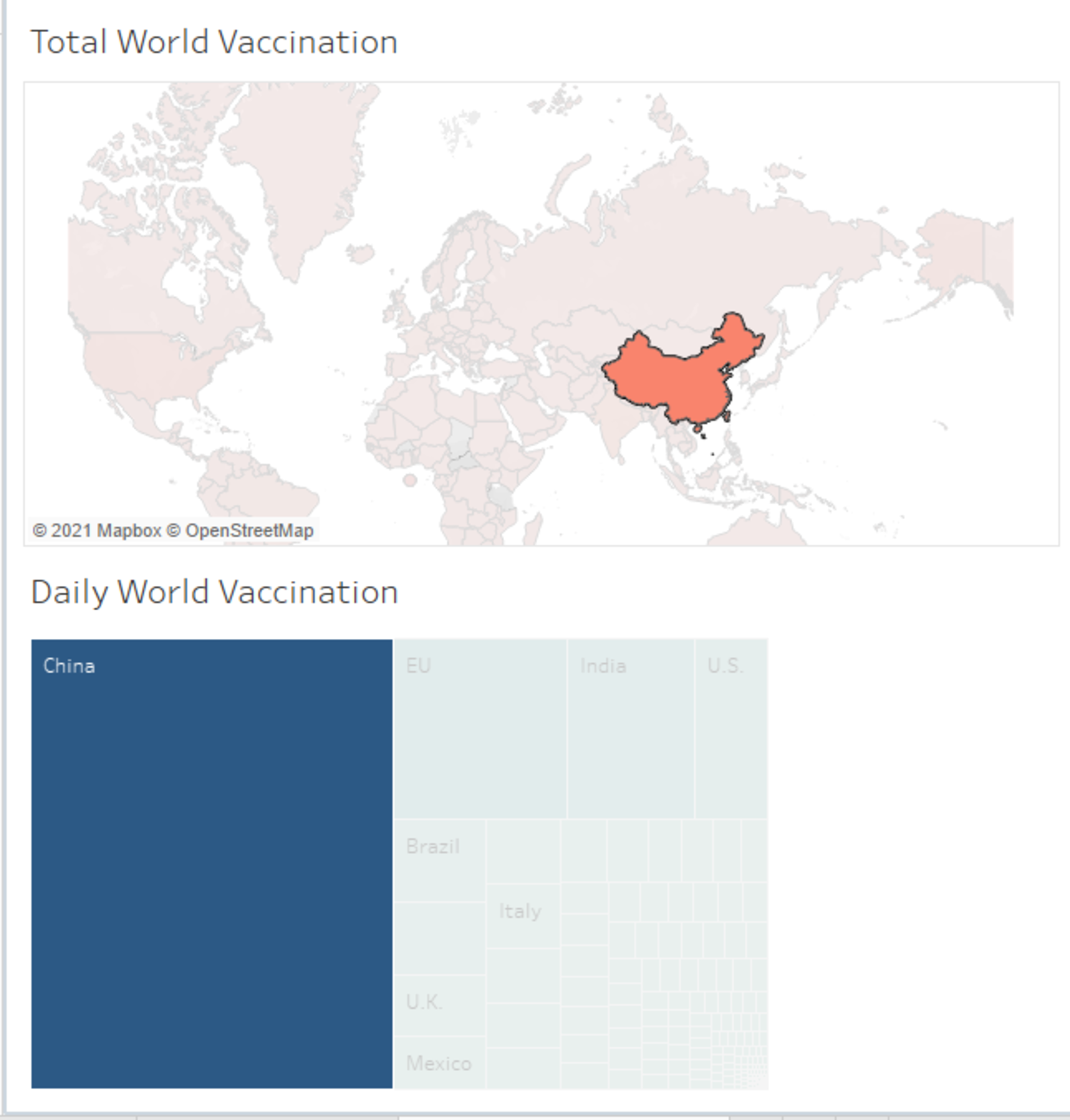 When you click on any country on the map, you can see the number of vaccinations per day in that country in the visualization below.